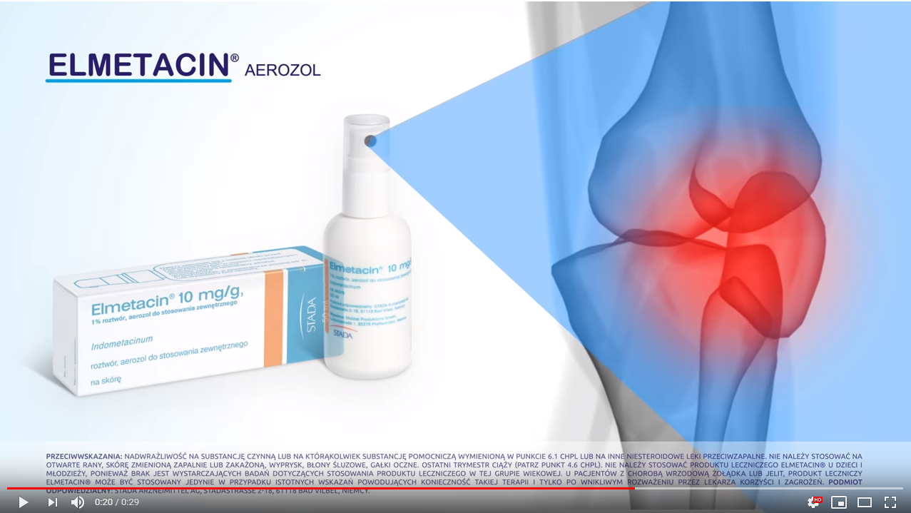 ELMETACIN® – preparat do stosowania miejscowego w nowoczesnej formie sprayu, zawierający indometacynę.