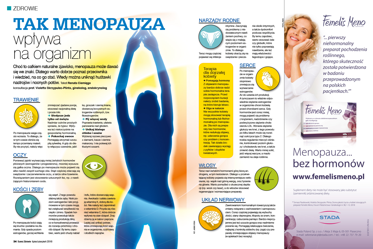 Femelis Meno, którego promotorem w Polsce jest Stada Poland to jedyny na polskim rynku niehormonalny preparat pochodzenia roślinnego (suplement diety) dla kobiet z objawami wazomotorycznymi menopauzy.