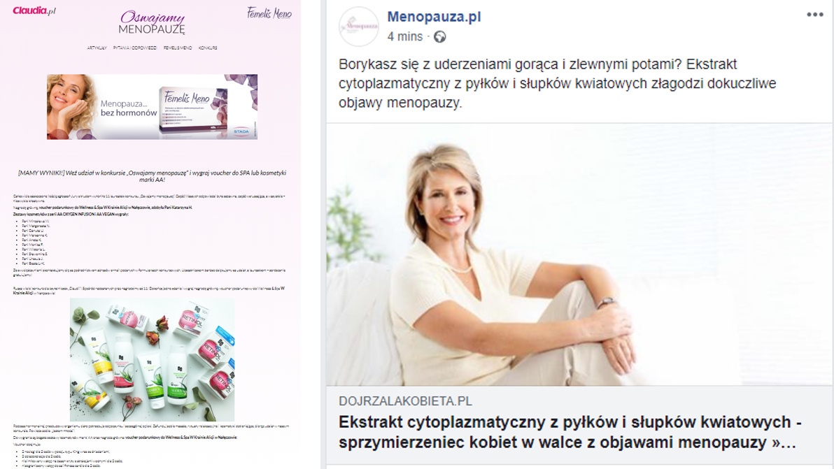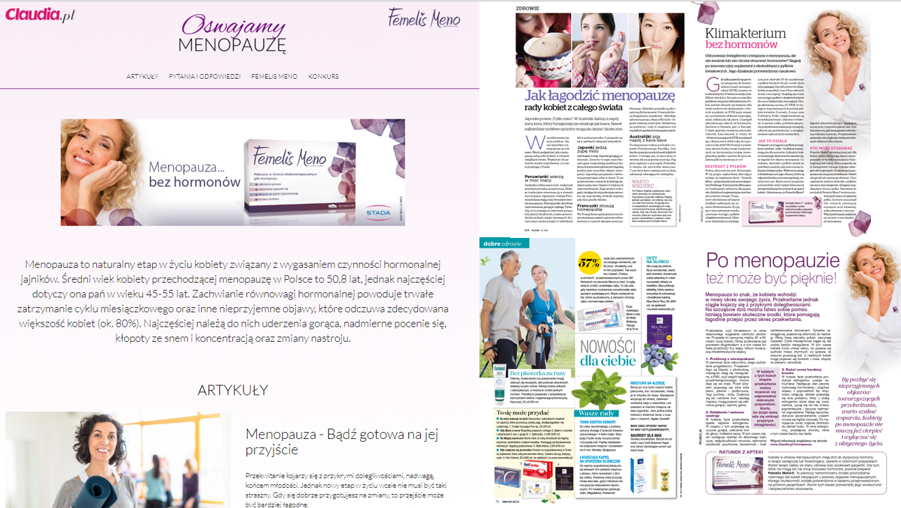 Zaplanowaliśmy i zrealizowaliśmy projekt "OSWAJAMY MENOPAUZĘ". Była to niestandardowa kampania, oparta o działania digital oraz prasę, jako spójne działania wspierające się wzajemnie. Zbudowaliśmy dedykowaną sekcję specjalną dla marki Femelis Meno przy współpracy z serwisem Claudia.pl, gdzie edukowaliśmy kobiety w temacie menopauzy oraz stylu życia w tym okresie życia. Akcja miała charakter przede wszystkim contentowy, edukacyjny, poradnikowy i ekspercki, przy wsparciu Zespołu Ekspertów Polskiego Towarzystwa Menopauzy i Andropauzy. Towarzyszył jej konkurs z nagrodami.